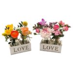 L’arrangement Mini vases Love X2 se compose d’un somptueux choix de fleurs de saison pastels & colorées dans leurs 2 chics structures Love en bois.